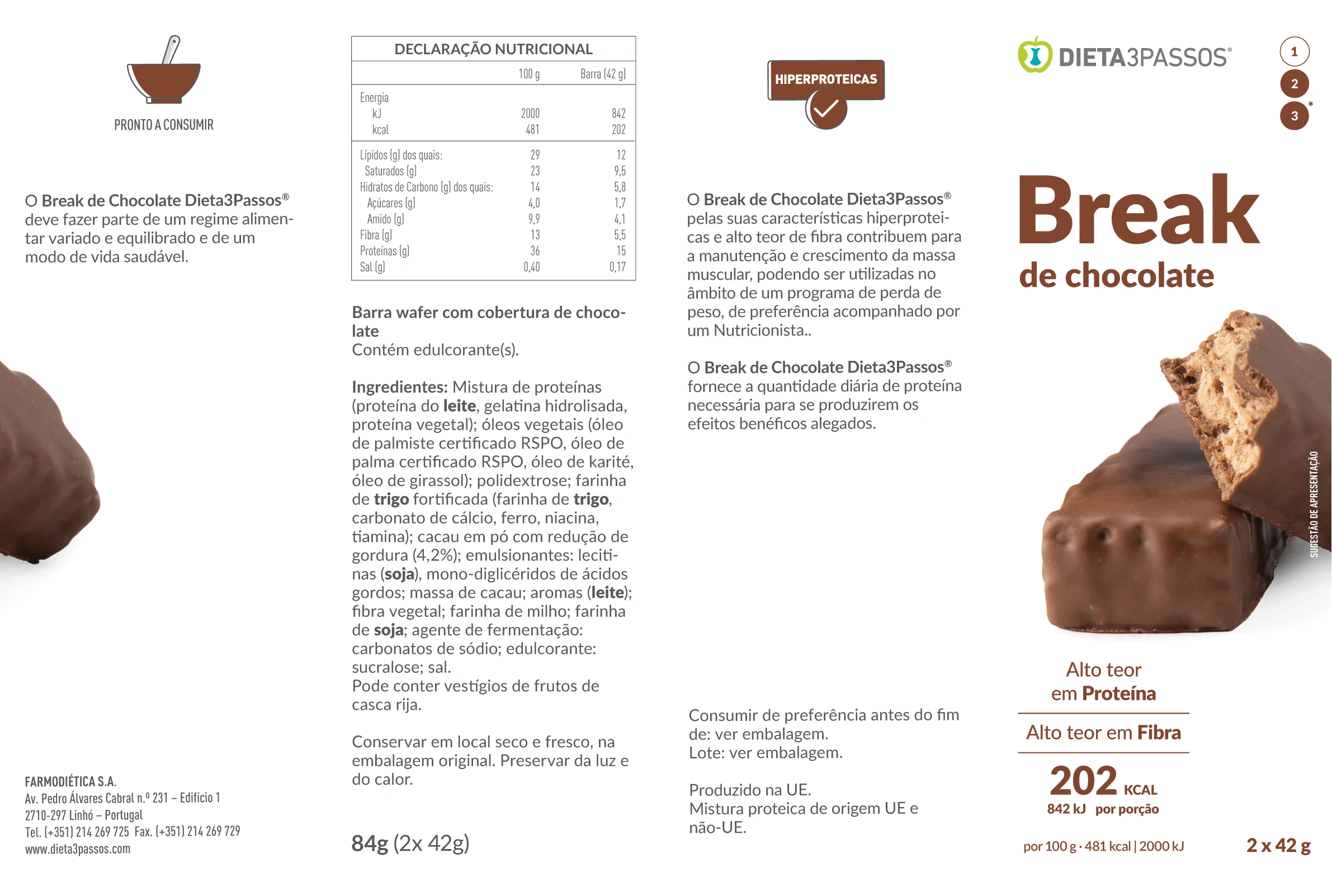 O Break de Chocolate Dieta3Passos® (nova fórmula), que está mais irresistível do que nunca! Permitido desde o 2º Passo da Dieta3Passos®, é uma opção prática e saudável para colmatar o seu desejo por doces.
