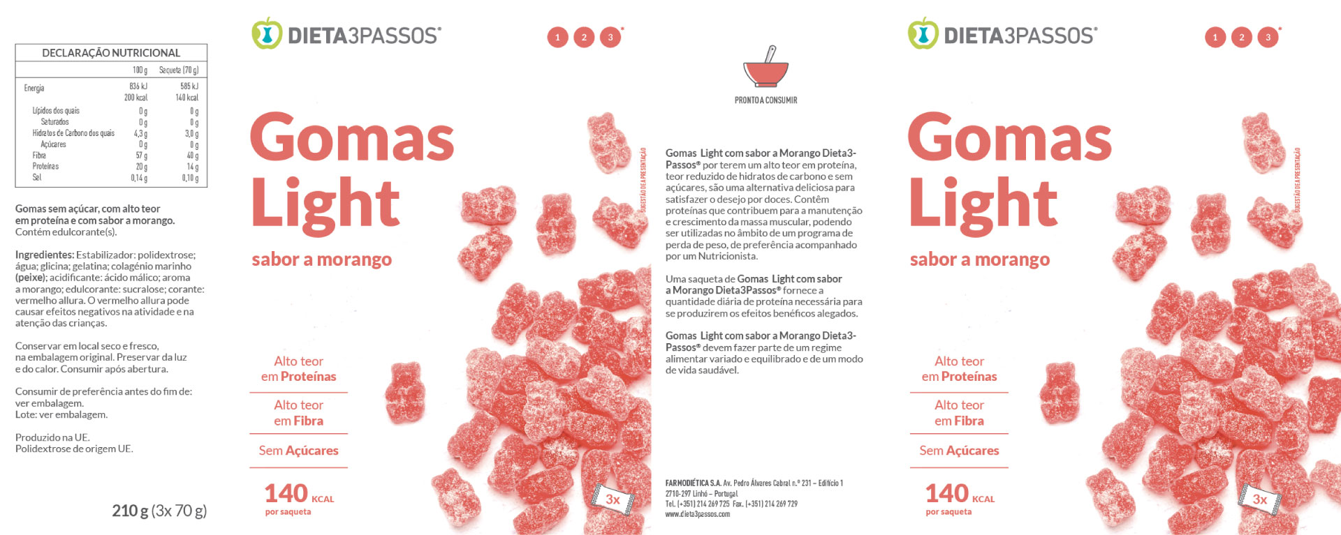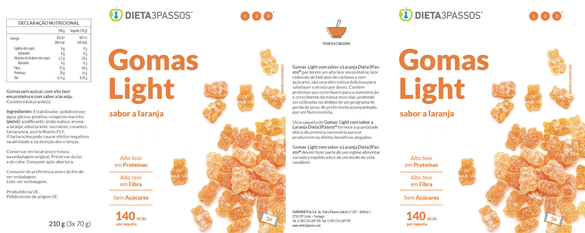 As Gomas Light Dieta3Passos®, por terem um alto teor em proteína, teor reduzido de hidratos de carbono e sem açúcares, são uma alternativa deliciosa para