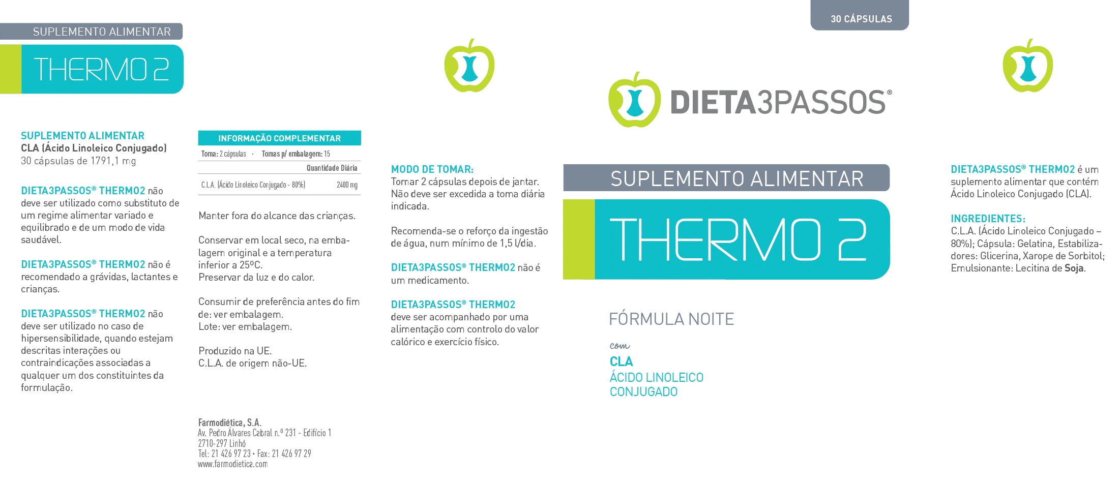Dieta3Passos Thermo 2 é um suplemento alimentar que contém Ácido Linoleico Conjugado (CLA).