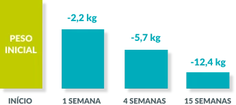 Resultados: Perda média de 6 kg no 1º mês*.