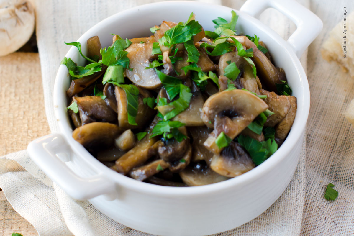 Acrescente os cogumelos, tempere com sal, pimenta branca e deixe cozinhar mais alguns minutos.