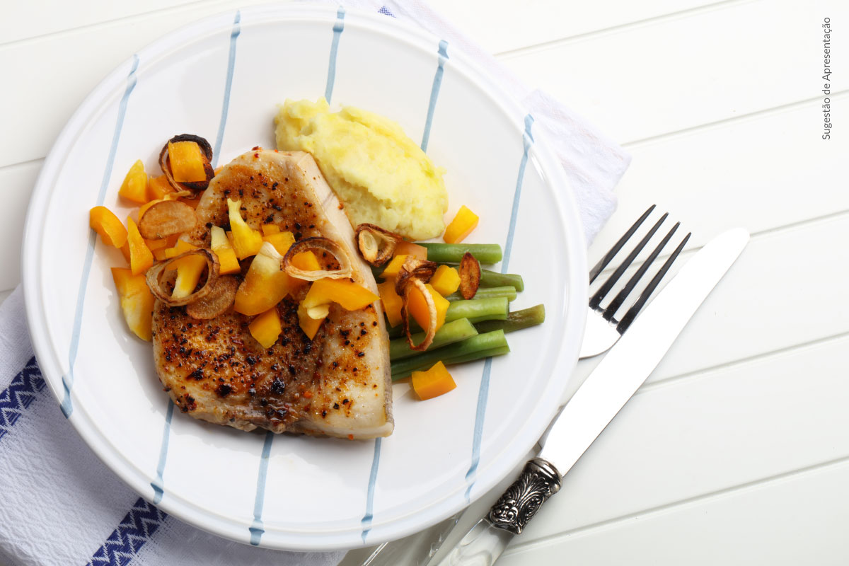 Pode acompanhar com uma salada variada e legumes cozidos.