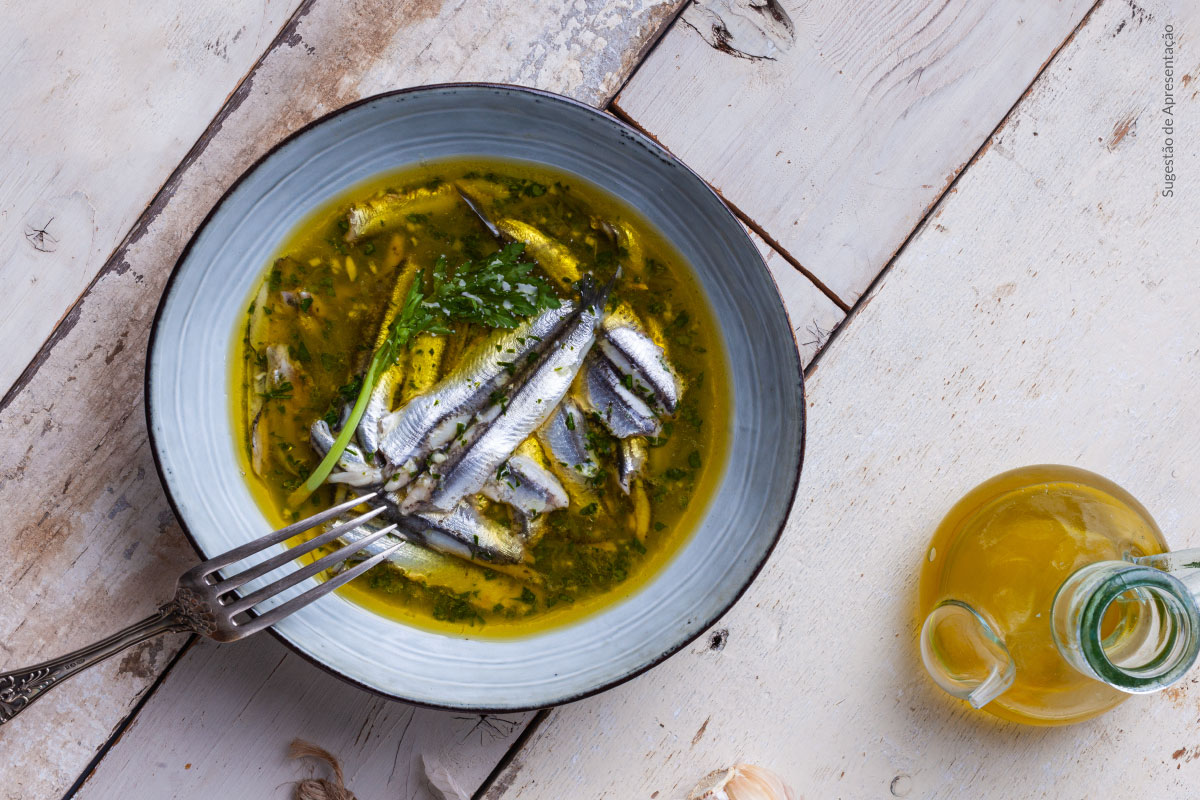 Regue com azeite virgem extra de modo a cobrir o peixe e deixe marinar durante mais 1 a 2 horas. Após este tempo, retire a petinga da marinada e sirva como entrada ou petisco.