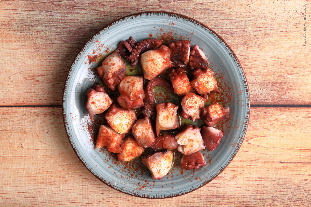 Escorra bem o polvo, corte os tentáculos do polvo em rodelas de 2 cm.