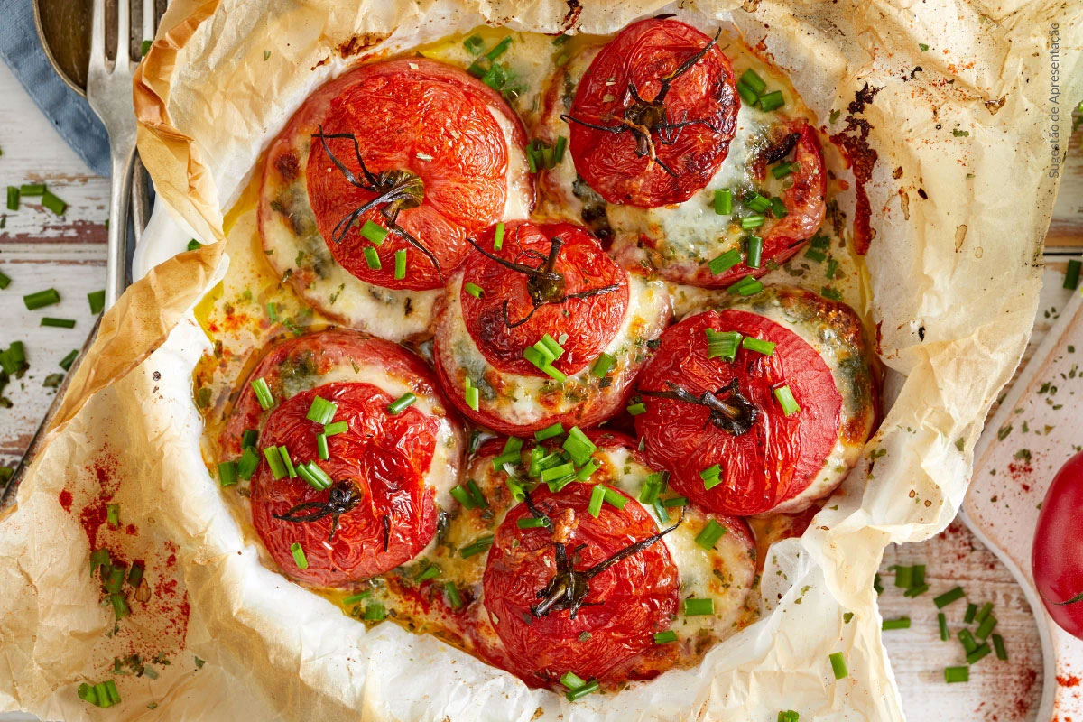 Recheie o tomate com a mistura anterior e sirva como entrada ou prato principal.