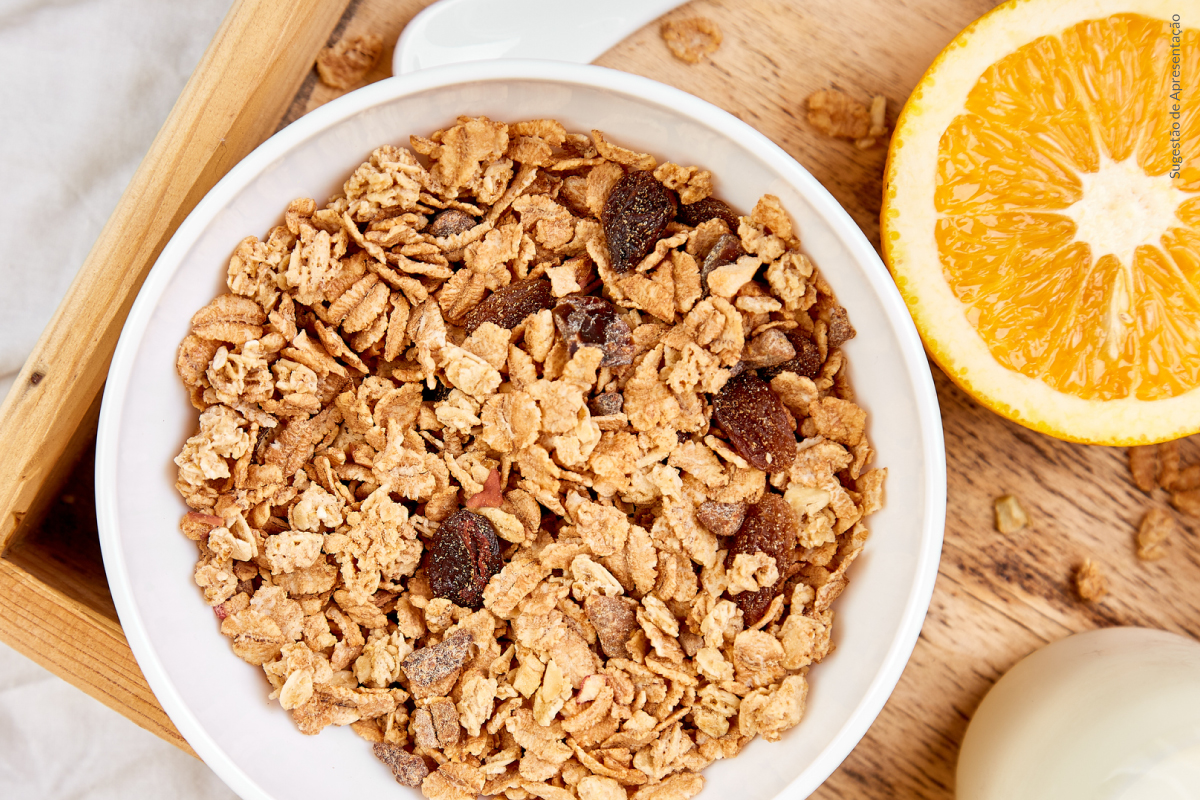 Numa tigela grande, misture aveia, coco ralado, linhaça, chia, stevia e canela.