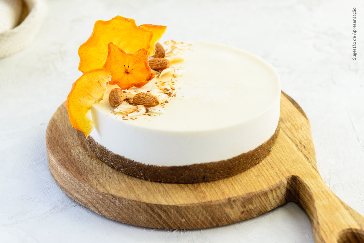 Coloque a mistura do queijo com o dióspiro em cima da massa, na forma, e leve ao frigorífico até solidificar.
