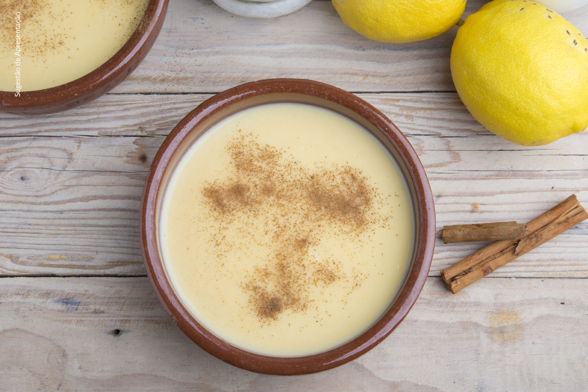 Por fim, antes de colocar em taças e polvilhar com canela, retire a casca de limão e o pau de canela.
